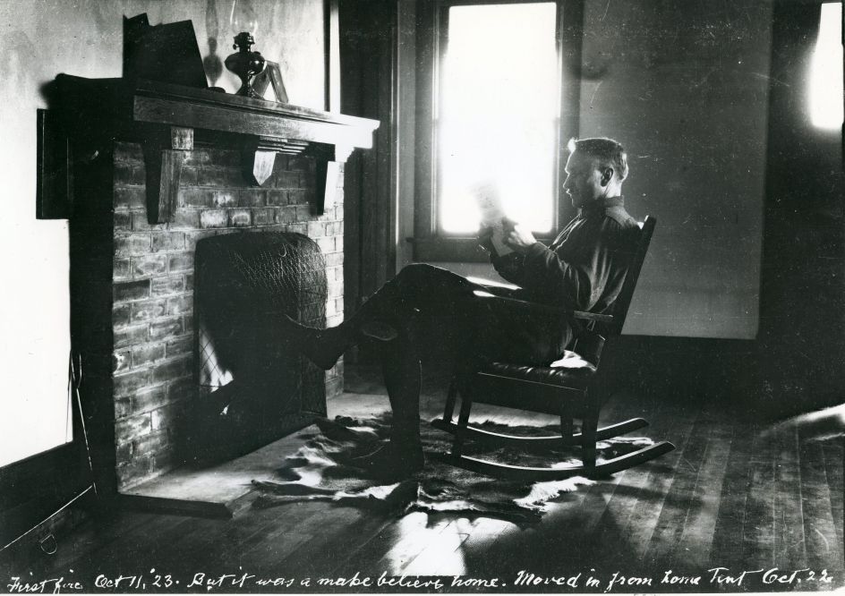 - Mack Laing enjoys the first fire at his new home, Baybrook, on Oct. 11, 1923